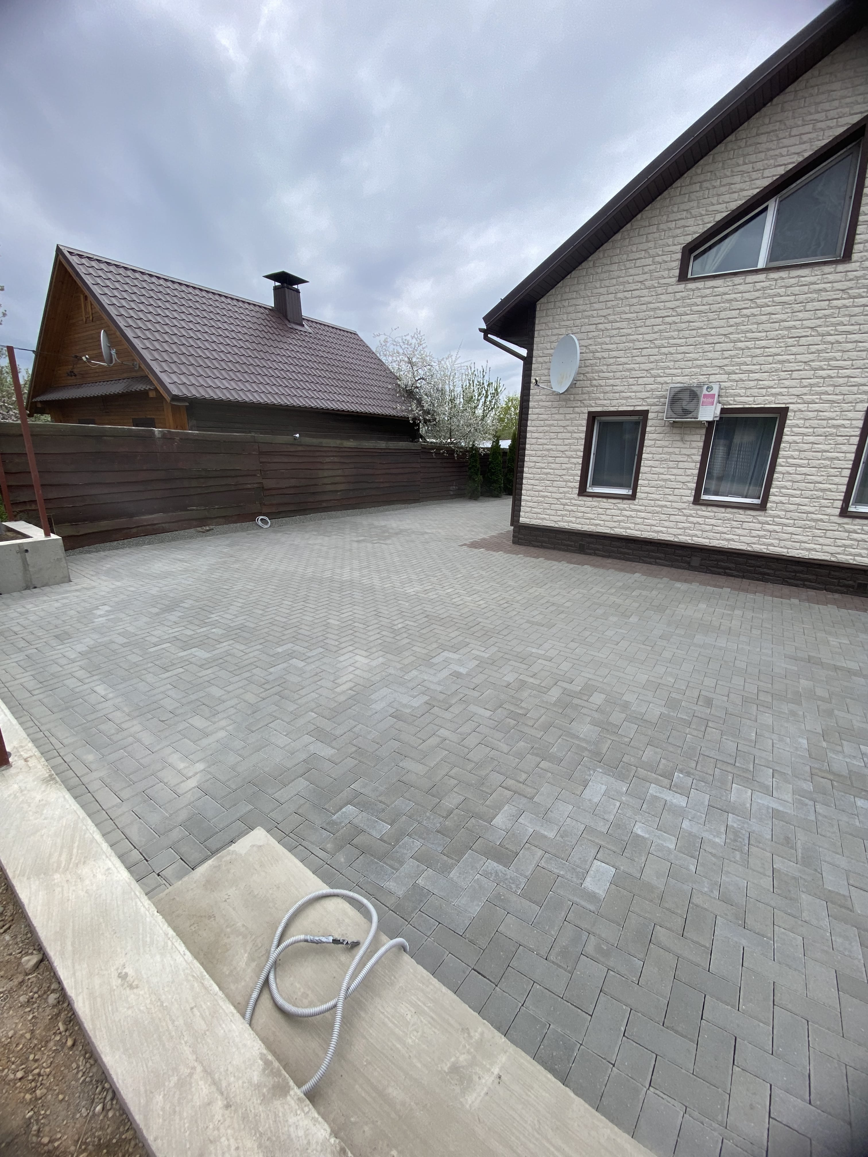Укладка дорожек из плитки и под стоянку авто на бетонное основание