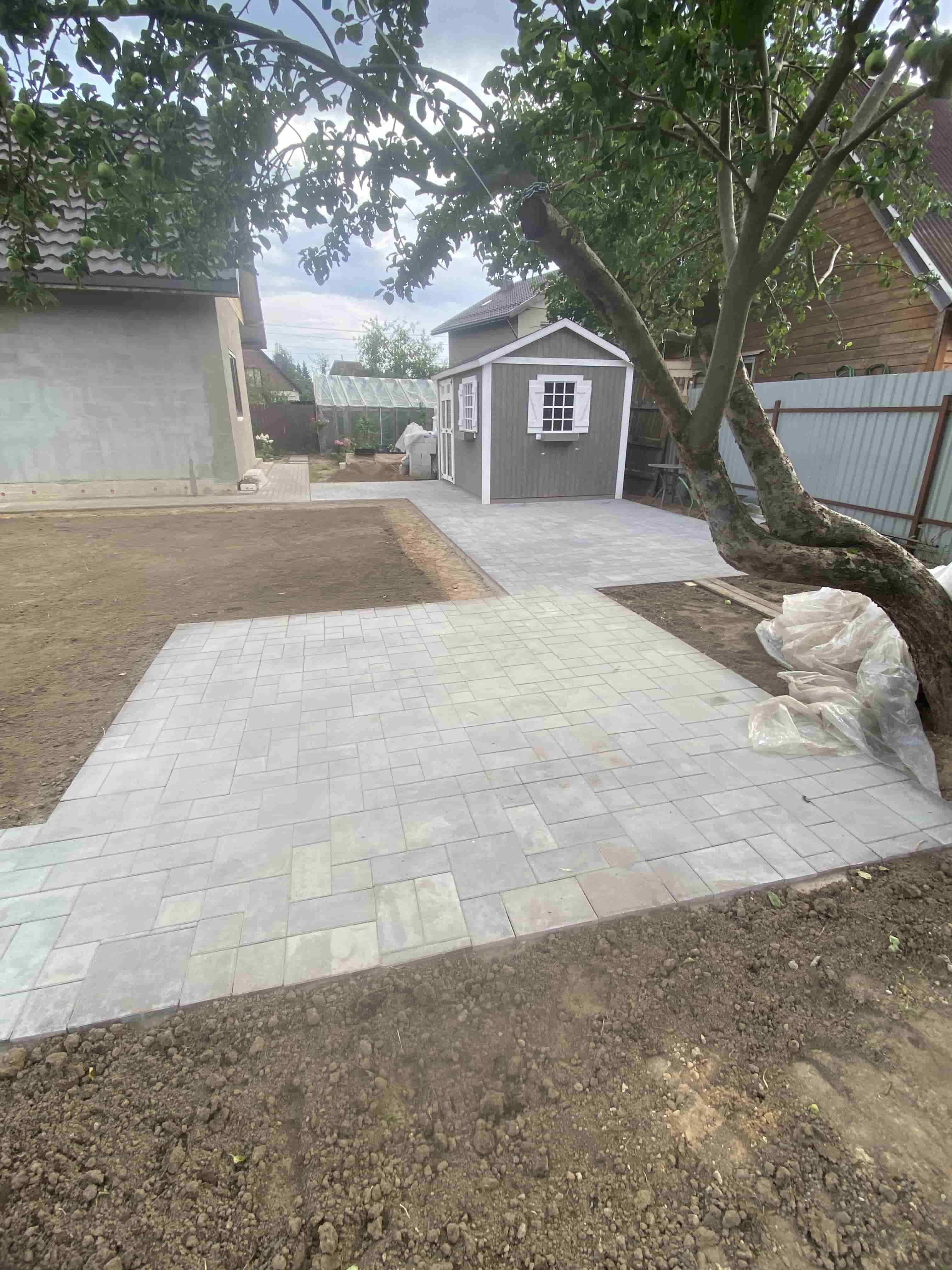 На первом этапе специалисты провели снятие верхнего слоя почвы и выравнивание участка, что обеспечило идеальную основу для дальнейших работ. Затем мы подготовили основание под укладку плитки в строгом соответствии с технологическими стандартами, что гарантирует долговечность и надежность покрытия.